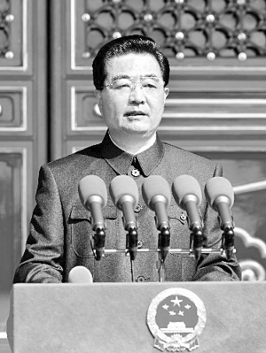今天,我们隆重集会,庆祝中华人民共和国成立60周年。在这个喜庆而又庄严的时刻,全国各族人民都为伟大祖国的发展进步感到无比自豪,都对实现中华民族伟大复兴的光明前景充满信心。