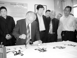 10月14日,韩国世界文化艺术发展中心6位书法家不远万里来到中国书法之乡——郸城县,与该县书法界同道交流书法艺术。中韩两国书法家现场书写并互赠书法作品,以增进友谊。