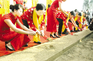 淮阳是“中原圣土”采集活动的第一站,采集仪式按照传统礼仪进行。在传统民族乐曲声中,市政协主席穆仁先恭读祭文后,采集圣土的领导和嘉宾依次向人祖伏羲敬献花篮。在统天殿东侧空地,领导和嘉宾净手后就地采集太昊陵圣土,分别装入特制的九尊“羲皇鼎”内,由礼宾将采集的圣土迎奉至统天殿月台,淮阳县领导向“世界客家播迁路”组委会负责人递交“太昊陵圣土”,整个活动庄严神圣。