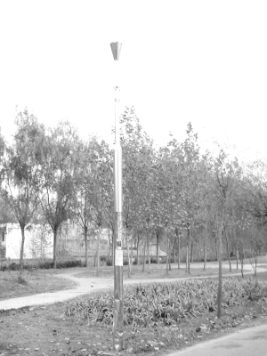 27日晚7时,记者沿东新区查看发现,除了东环路往北、文昌大道以东部分路段的路灯亮了以外,仍有大片区域漆黑一片,行人也越来越少。特别是河堤两岸完全没有灯光,只能依稀看到三两个人匆匆走过。“走这段路每次都得壮着胆才行。”一个过路的学生模样的小伙子说。记者细数了一下,从大庆路至东环路的沙河两岸路程各约3公里,共计150余根路灯,但目前已有一成惨遭破坏。原本光鉴可人的不锈钢灯杆杆身“伤痕累累”,浅黄色的伞状灯罩或被折断,或不知去向,大部分路灯被撞断了“腰”,有的甚至连高高的灯杆都消失了,只剩下短短的一截钢管立在原地。记者留心观察了一下,发现这些遭到“黑手”的路灯大都在河堤拐弯处,有明显的车辆猛烈撞击痕迹。