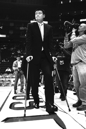 赛前40分钟,姚明出现在训练场,尽管他仍旧需要拄拐,但动作已然娴熟。甫一亮相,姚明立刻成为焦点,尽管不接受采访,但在场所有人都乐于同他握一握手、击一下掌。