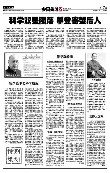 钱学森助手涂元季还曾在《人民日报》上撰文介绍了钱学森面对自己所犯错误时的科学精神和品德,在上大学时,他曾因为一个字的错误,在评分完毕后主动请老师扣分。