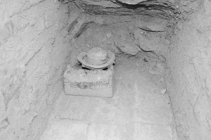 据了解,这座汉墓位于丁集镇王李桥村砖窑厂东约100米处,东西砖碴路北侧。当文物普查组发现这一古代遗址后,立即组织文物普查队员和当地村民对墓葬进行抢救性发掘。据普查队员介绍,经过清理墓道、墓室,普查队员发现汉代绿釉红陶磨一套、绿釉红陶灶一件、红陶狗一只和部分陶片。红陶磨直径20公分,高10公分,出土较完整,表面绿釉有少许脱落。绿釉红陶灶长22公分,宽12公分,高10公分,保存完好。红陶狗已残,腿长20公分,表面施绿釉。墓道和墓室由汉砖铺砌而成,墓道南北走向,长约1.2米,宽0.7米;墓室东西长约2.6米,宽0.9米,高约0.8米,顶已塌陷。