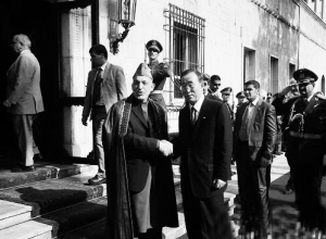 11月2日,阿富汗总统卡尔扎伊(前左)在喀布尔欢迎到访的联合国秘书长潘基文。当日,阿富汗独立选举委员会宣布,阿总统选举第二轮投票不再举行,现任总统卡尔扎伊获胜当选阿总统。新华社