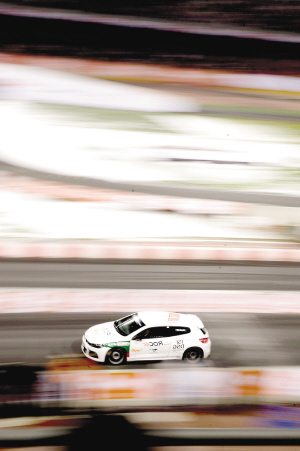 11月2日,中国车手董荷斌驾驶赛车冲过终点,他在中国车王争霸赛中获得冠军。