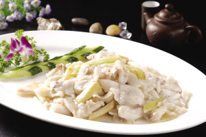 京葱爆生鱼片 龙湖山庄提供 美食热线:2698999 食评:葱爆肴味 鲜香味绵长
