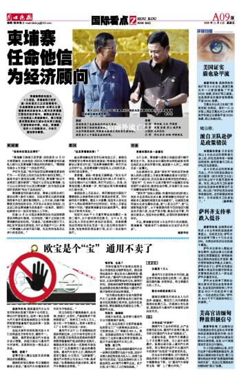“黄衫军”创始人颂提·林通坤创办的《经理人报》5日在其网站发表文章,称柬埔寨任用他信“必将给本已麻烦的两国关系再添新伤”。而泰国总理阿披实先前也警告洪森,要“三思而后行”,要“以国家利益为重”。由于泰国国内现今仍因他信问题政治矛盾凸显,社会严重分裂,集会活动不断,阿披实曾表示,他信无论在哪里,必须回到泰国接受审讯。