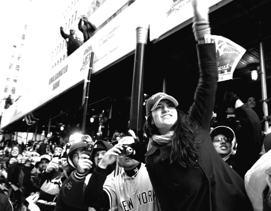 上周六,一场盛大游行在纽约曼哈顿百老汇大街上举行,庆祝纽约洋基队第27次获得美国职业棒球大联盟总冠军,数十万纽约民众以传统抛纸屑的方式庆祝洋基队夺冠。图为市民向纽约洋基队的游行队伍欢呼。11月4日,纽约洋基队击败费城人队,时隔8年再登美国职业棒球大联盟最高领奖台。新华社记者申宏摄