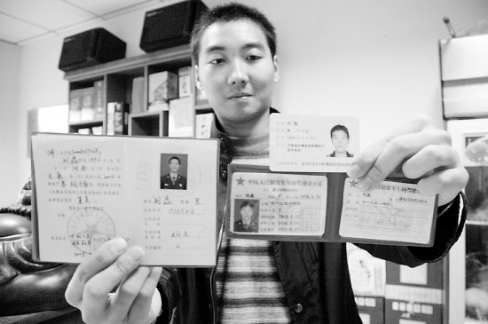 昨天,市区光荣路上怀庆府闹汤驴肉馆的刘老板拿着一叠捡到的证件给记者看,希望通过本报能找到失主刘磊。 原来,5天前,一位顾客吃饭时忘在这里一个快递包,里面装着刘磊的身份证、退伍证、部队驾驶证等有关证件。 怕失主着急,刘老板想通过本报告诉刘磊一声。 晚报记者 朱海龙 摄