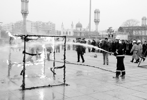 本报讯 一声令下,几名市民争先恐后地穿消防服。由于慌忙,一名市民竟然把消防服穿反了,引得现场观众一片笑声……昨日是全国第十九个“消防宣传日”,我市消防部门在市五一广场举办消防宣传活动,很多市民主动参与体验“赴汤蹈火”的消防官兵生活。