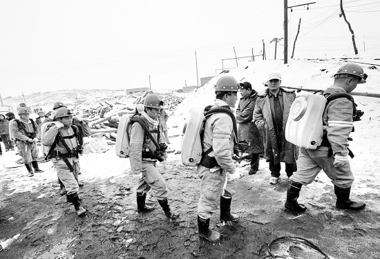 11月10日,宁夏矿山救护人员在事故现场准备下井救援。当日6时53分,宁夏石嘴山市惠农区福利厂沙巴台煤矿发生瓦斯爆炸事故,造成井下作业矿工8人死亡。据宁夏煤矿安全监察部门介绍,当时共有19名矿工在井下作业,目前消防官兵和矿山救护人员抢救出的11名伤员已送往医院救治。 新华社发