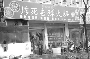 昨天,市区长青路上,众多路人驻足在这家饭店门前。吸引他们的不是这家饭店的美食,而是它的店名——“撑死去球火锅”。