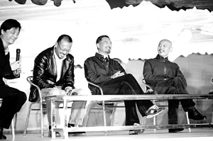 崔永元在现场“拷问”姜文、发哥和葛优(左起),俨然成了《让子弹飞》版“实话实说”。