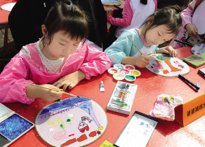 11月15日,孩子们在家长的带领下进行画扇创作。