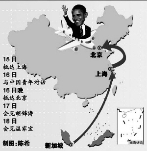 白宫主页发布的信息似乎也印证了这一点。白宫主页上发布的总统行程中提到,奥巴马选择16日在上海与中国青年对话富有深意,因为这里正是1972年中美《上海公报》发表的地方。