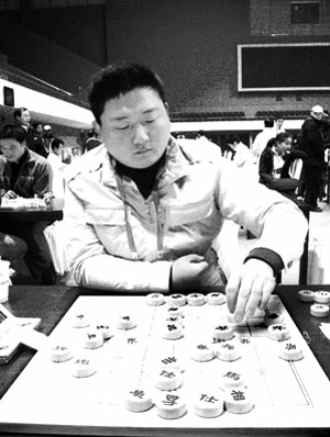 外面是寒意逼人,棋盘上却是杀气腾腾:10分加10秒的快棋赛,小谢先行,形成后补列炮的布局后,第六步就出奇招,伸炮打马要求兑炮——这在专业棋手的心中,丢失步数兑子实乃布局大忌,而小谢却“胆大妄为”。进入中局,双方都是车双马炮,小谢3路兵渡河,控制了局面。然后,补士驱车,再策马进攻,直逼黑棋。吕钦毕竟宝刀未老,瞄准红方左路底线马的弱点,以马压马,展开反攻。此时双方时间之比是6分比9分,吕钦用时更少。小谢不愧是具有大将风范的后生,对攻中,他竟沉下心来“长考”,然后卸去中炮,先守一步。吕钦于是果断弃掉左马,飞炮击兵,以车马炮在右翼策划攻势。此时小谢只余2分多钟,见束缚难解,干脆主动上帅。吕钦借势追杀红马。谢业枧时限紧急之下,继续避王,想先守后攻,未料中相已是弱点。随后,吕钦吃马、杀中相,至此胜负立判,小谢已是穷途末路。在22秒比5分的时间形势下,吕钦花了整整两分钟,构思杀招,最后得子胜定。