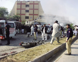 警方说,袭击者使用了大约8至10公斤炸药。爆炸使法院大门遭到损毁,停在附近的5辆汽车也被炸毁,爆炸现场上空弥漫着滚滚浓烟。据介绍,被炸法院附近有许多重要的政府部门的建筑设施,包括西北边境省省督府和情报机构的办公大楼等。