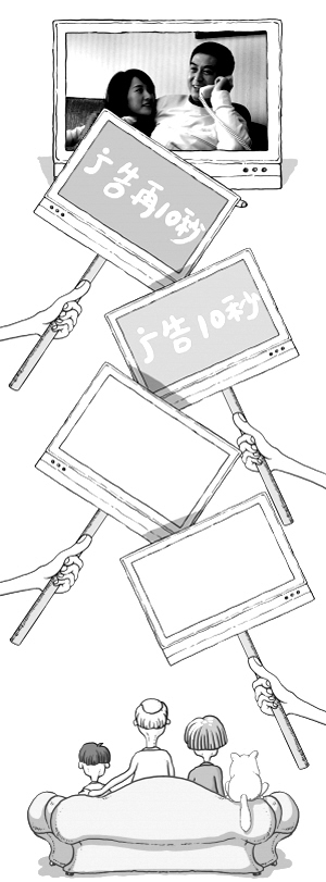 今年9月10日,广电总局发布第61号令《广播电视广告播出管理办法》,自2010年1月1日起施行。办法明确要求,除在节目自然段的间歇外,不得随意插播广告。其中,播出机构每套节目每小时商业广告播出时长不得超过12分钟,电视台在19∶00至21∶00之间,商业广告播出总时长不得超过18分钟。