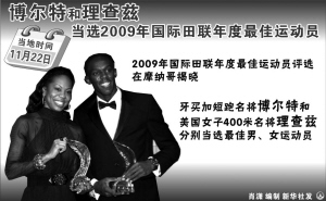 本报综合消息 北京时间11月22日夜,国际田联在蒙特卡洛举办的2009年世界田径大会上宣布了年度最佳男女选手的获奖名单,牙买加短跑巨星乌塞因·博尔特没有悬念地蝉联了年度最佳男选手的荣誉称号,而美国女子400米短跑选手桑雅·理查兹,凭借她在2009年400米比赛中无可争议的绝对优势,个人第二次获选为年度最佳女选手。国际田联主席迪亚克和国际田径基金会名誉主席摩纳哥阿尔贝特二世亲王亲自把奖杯交给两位顶尖选手。
