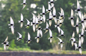 远道而来的须浮鸥每年都在这片湿地作短暂的停留,水洼里的小鱼虾为它们的长途旅行提供能量补给,少有人打扰的苇塘为它们提供临时的落脚点。当然,偶尔也会有些小麻烦。白腹隼雕会时常来巡视自己的领地,长途飞行而来的须浮鸥无论在速度和力量上都不是白腹隼雕这样的顶级空中捕食者的对手。分散觅食的须浮鸥就会立刻聚集在一起,以近乎一致的飞行速度和整齐的节奏来干扰天敌,猛禽好比撞进了一个巨大的沙丁鱼群,无数的目标让它没有了选择,最后只好怏怏而去。