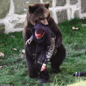 本报综合报道 日前,在瑞士首都伯尔尼熊公园里,一名游客突然掉进了棕熊围栏里,棕熊芬恩立即对他进行猛烈攻击。
