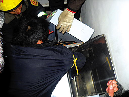 11月26日18时许,项城市莲花大道某快餐店工人的右手臂被和面机死死“咬”住,情况十分紧急。项城市消防官兵接到报警后迅速赶到现场,经过20分钟营救,被困工人的右手臂被成功取出。 晚报记者 张猛 摄 线索提供 林先生