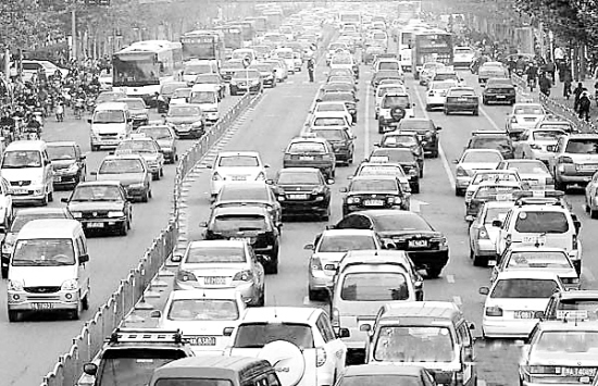 11月30日,郑州市街头“车流滚滚”。近年来,郑州市进入了机动车快速发展的时期,私家车的保有量更是逐年大幅度增长。今年,平均每天上牌新车700多辆,其中私家车占七成。据估算,到今年年底,全市私家车的数量将超过100万辆。 新华社 发