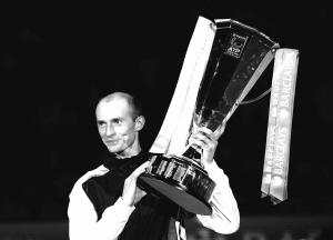 达维登科,一年到头兢兢业业。因为参赛场次之多,被人们起了个外号叫“劳模”。自从3年前,他便牢牢把持着世界前十的位置。但人们并不打算追捧这个看上去没什么特点的球员。即便这次在伦敦,他击败了费德勒,依旧少人问津。过去10天,他一共为球迷签了几个名?一个也没有,他神情坦然,不见尴尬。达维登科在大满贯无所作为,最好战绩不过四强,这是他的致命伤。在大师杯夺冠的明星中,除了达维登科,只有纳尔班迪安和克雷特加同样有着缺少大满贯金杯的尴尬。“我想明年,我还要试试。能够拿下大满贯,对每个球员来说都是天大的事。那些原先我打不过的球员,他们明年可又老一岁了。”很多人说,与外表平淡的达维登科接触多了,并不乏味。