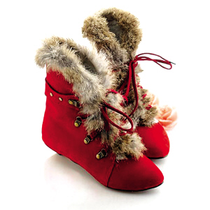 如果你想扮可爱淑女,那么这双红色的皮草短靴是最无敌的了。