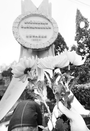13日,市民向“侵华日军南京大屠杀中山码头遇难同胞纪念碑”敬献鲜花。当日,南京各界群众举行集会,悼念侵华日军南京大屠杀30万同胞遇难72周年。在南京下关“侵华日军南京大屠杀中山码头遇难同胞纪念碑”前的分会场,数百名机关干部、市民群众、学生、部队官兵及大屠杀幸存者代表举行悼念仪式,一同凭吊当年惨遭杀害的中国同胞。72年前,侵华日军在南京制造了惨绝人寰的屠城血案,遇难者达30万人,仅在下关地区,日军即杀害了10万多人。新华社发