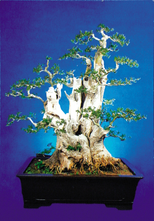 周口盆景这几年有了长足的进步和发展,这得益于周口盆景主流界有着“不怕资源缺,就怕没雄心;不怕起步晚,就怕没壮志;不怕基础差,就怕不虚心”的好风气。今年,我市盆景界曾组团参加在鄢陵举办的中国中原第九界花博会盆景大赛,获金奖2个、银奖6个、铜奖8个。其中,于文华先生制作的冬红果——《历尽劫难志不屈》和赵国强先生制作的对节白蜡——《大器晚成》获得金奖,深受盆景界人士和广大观众的好评。图为《大器晚成》盆景。朱虹 摄