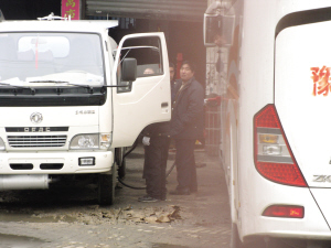 据田先生讲,在本报报道此事后的一周内,他没有在该市街头遇见过这种加油车,以为当地有关部门已经取缔了这些非法流动加油车。可近两天,在家门口的人行道上,田先生几次看到没有车牌照的流动加油车给车辆加油。有一次,他还用数码相机拍下了当时的一幕(如图)。