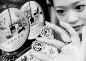 当天,由中国国家博物馆艺术品开发中心监制的“中国纯金压岁钱”套装在北京上市,套装包括1枚5克金币和1枚3克银币,分别以“胸有成竹”和“精卫填海”为主题图案。 新华社 发
