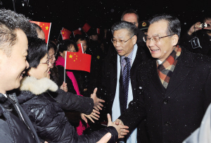 当地时间16日晚,中国国务院总理温家宝抵达丹麦首都哥本哈根,出席今天举行的哥本哈根气候变化会议领导人会议。