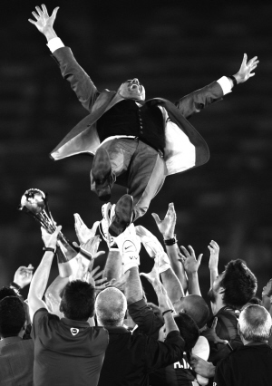 当巴萨队长普约尔在阿联酋阿布扎比扎耶德体育城球场举起世俱杯冠军奖杯,少帅瓜迪奥拉却在静静哭泣,他开始琢磨卫冕的问题。“在6项赛事中卫冕,这是我的目标也是我的责任,我必须做到。但我现在还不知道怎么做到。”瓜迪奥拉在世俱杯决赛前夜曾略带悲观地说:“未来是黑暗的,因为不管我们以后做到什么,都很难超越今年的成就。这是一个独一无二的赛季,拿任何其他赛季来比可能都是错误的。”