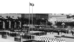 8时整,升旗仪式正式开始。连同崔世安、何厚铧在内,在场的数百人均屏息凝视,举首向着晨风中招展的国旗、区旗,行注目礼。嘹亮的国歌在这个寂静的清晨传得很远。从旗杆底部到顶部,升旗过程需时45秒,有关十年的记忆便在这45秒之间闪回。这一晨,这十年,澳门变化日新月异,可谓是莲开十载的“芳香之旅”。