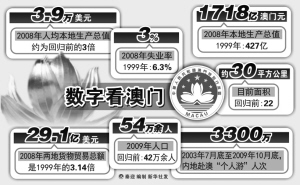 展望未来,澳门的明天令人憧憬。根据今年1月国家发改委公布的《珠江三角洲地区改革发展规划纲要(2008~2020年)》,到2020年,珠江三角洲地区将建成粤港澳三地分工合作、优势互补、全球最具核心竞争力的大都市圈之一。