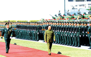 检阅结束后,胡锦涛视察了驻澳门部队军史馆。