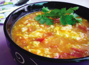如果不愿意吃荤的,也可以喝碗素疙瘩汤,配上西红柿、黄瓜、青菜、木耳、鸡蛋等,清爽宜人,解乏温胃,非常适合刚旅行归来的人,也适合头天酒喝多了,第二天需要调养的人。