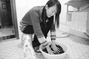我先倒一些皂粉在大塑料盆里,把热水浇进去,把衣服均匀揉搓到湿透,浸泡了几分钟后,开始洗。看着大盆里的水一点点变黑,而衣服颜色越来越鲜艳,连日来工作上的劳累也似乎消失了,我不自觉哼起了歌。