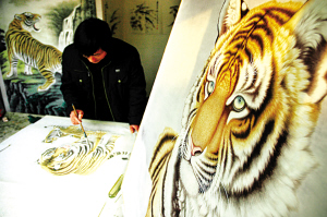 ▲马义畅的工笔虎画曾被新加坡、日本、美国等国际友人收藏