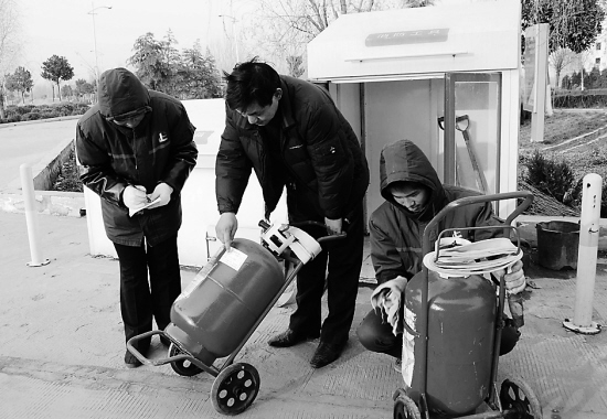 鹿邑县 元旦前检查安全设施 元旦即将来临,连日来,鹿邑县在全县范围内开展了一次安全生产大检查,以有效预防安全事故发生。图为该县石油公司员工对加油站消防设施进行自查登记。晚报记者 侯国防 通讯员 胡洪涛 摄