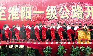 本报讯 “我宣布!郸城至淮阳一级公路开工!”2009年12月31日,在郸城县汲冢镇西侧郸(城)淮(阳)一级公路开工现场,随着市委书记毛超峰一声开工令下,七彩焰火直冲云霄,锣鼓军乐震天动地,数十台挖掘机轰鸣破土。这条路的开工建设,将填补我市没有一级公路的空白。