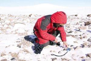 2009年12月30日,中国第26次南极考察格罗夫山队队员将一块陨石装入塑封袋中保存。当地时间2009年12月30日16时(北京时间2009年12月30日19时),中国第26次南极考察格罗夫山队在格罗夫山地区的最高峰——梅森峰脚下发现一块陨石,这是考察队在此次考察活动中发现的首块陨石。从陨石的破裂面可以初步判断这块重221.5克的陨石为普通球粒陨石。新华社发