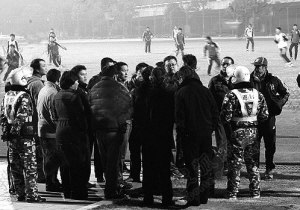 当晚19点30分,国家队在梅湖体育中心外场挑灯训练,不过训练开始后没多久,四名陌生的男子突然闯进了国家队训练场,向身边的记者打听:“这是中国队和哪个队在比赛?”当时,国家队正在场地内进行小范围的攻防训练,只是内部的训练。