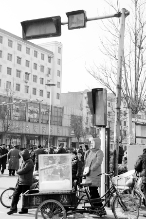 “老人家,您经常从这儿过吗?”昨日上午,在汉阳路与七一路交叉口,记者询问一位骑着三轮车的老人。他告诉记者,他每天都要送孙子到附近的闫庄小学上学,这个路口的红绿灯已经坏了两个多月,一直没人修理,每天他骑车过路口时都提心吊胆的。老人希望这个路口的红绿灯能早日亮起来。