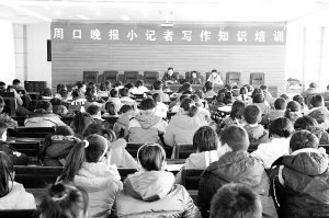 1月2日上午9时 ,周口晚报社在周口报业大厦举办了“小记者写作知识培训会”,近300名小记者参加了培训。图为培训会现场。