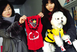 近日,随着气温骤降,宠物服装热卖起来。记者在宠物店看到,这里除了狗狗的衣服之外,还有许多宠物御寒的物品,主人们明知道不穿棉衣小家伙照样能过冬,就是图个好看。