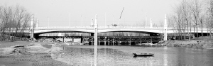 在大桥上,记者见到了63岁的荆海水老人。他住在解放街,曾是河北轴承厂的一名退休干部。关于大桥的昨天和今天,他都一一目睹。虽然对逝去的老桥有些留恋,但他说,毕竟老桥跟不上时代的步伐了,肯定要被淘汰。回想起老桥炸毁后的一年间,要走河西,大伙都得从小闸那儿绕行,雨雪天别提那狼狈劲了,后来市政部门在老路上铺垫上一层炉渣灰,路况才好了许多。