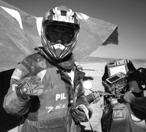 在摩托车组的比赛中,金城摩托车队的苏文敏以8小时36分57秒第73个抵达终点,目前在总成绩榜上名列第79位。